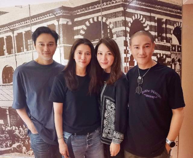 曝光合照中,张智霖与太太袁咏仪都是深色短袖T恤配牛仔裤的穿搭,丁子峻与娇妻吉祥则同穿黑色上衣,两对恩爱夫妇默契十足。画面中,长发披肩的靓靓与吉祥亲密站中间,二人老公则插兜扮酷分居两侧,型男靓女组合,丝毫看不出已年近半百的岁数(袁咏仪、张智霖夫妇49岁、丁子峻50岁),冻龄十足!