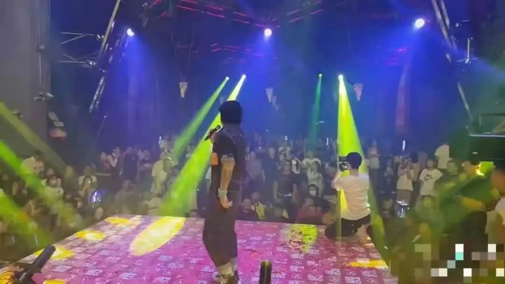 据了解,这个环境稍显简陋的酒吧是在云南。舞台周边围观的人员有很多,这样拥挤的环境似乎并没有影响到卖力表演的孙兴,他还一边巡视舞台一边和观众互动,时不时还叉腰高歌,看起来十分敬业。