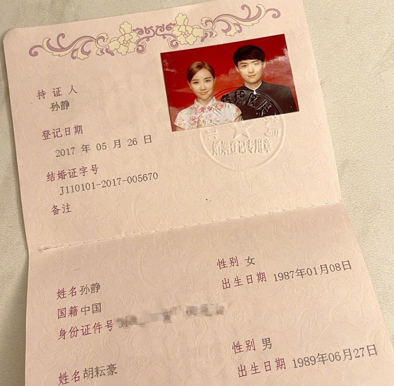 2021年5月26日,孙恩静晒出和胡耘豪的结婚证,吃瓜群众这才知道两人已经结婚4年,两人看起来也是相当恩爱。