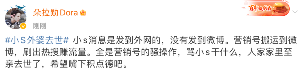 7月3日,小S外婆因病去世,她在社交媒体上发文悼念。没想到7月4日却登上了热搜榜第一名,引发热议:艺人家人去世,该不该广而告之?