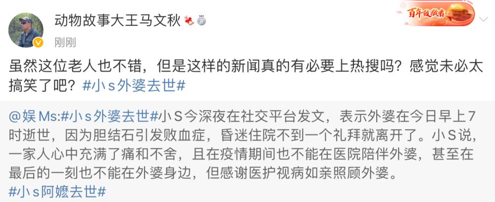 也有的网友认为:小S外婆去世,竟然如此“重要”?这样的新闻真的有必要上热搜吗?