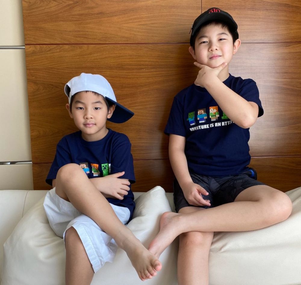 小鱼儿在看到精彩的东西时忍不住分享给爸爸和哥哥,但是一旁的沙溢正在和安吉聊天,并没有注意到小鱼儿的动作。照片中,安吉和小鱼儿穿着同款的上衣,兄弟俩看起来有爱又和谐。此外,他们父子三人都戴着口罩。