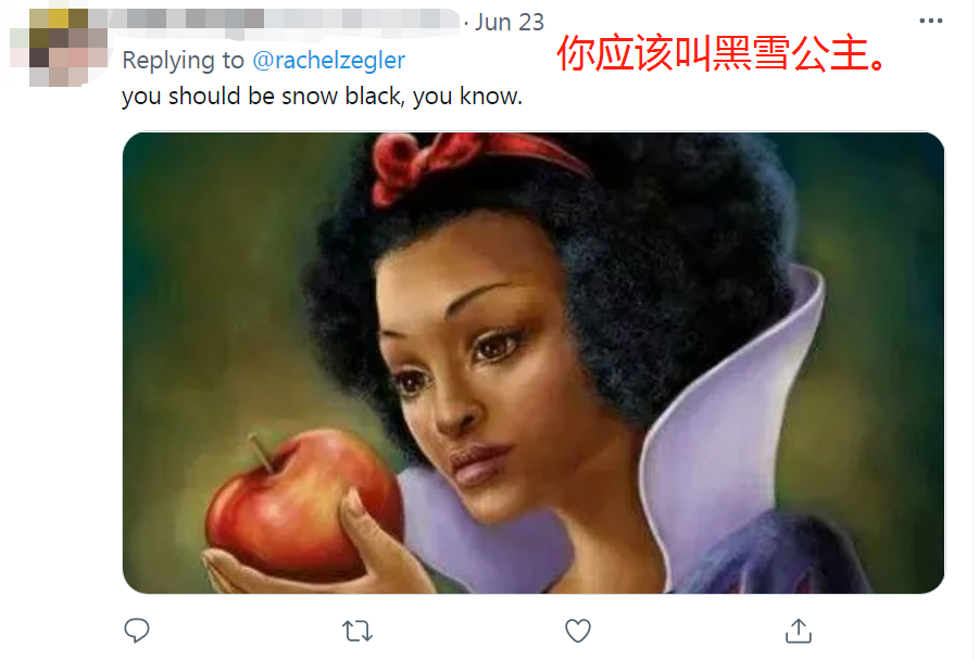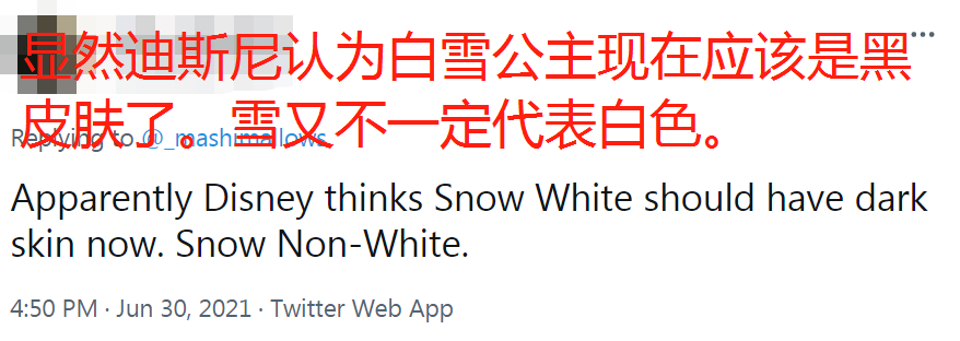 明明白雪公主的起名原因,就是因为她肤白如雪,结果迪士尼强行撕设定,找了个黑皮妹子?