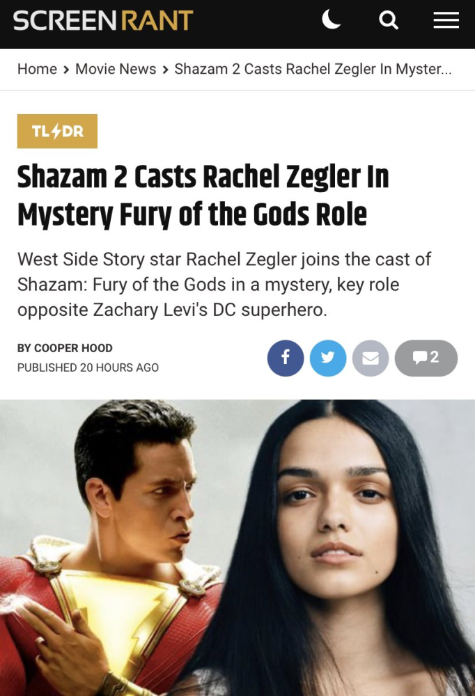 今年年初,她又拿到了超级英雄DC宇宙的饼,在《雷霆沙赞2》里演一个神秘的关键角色。