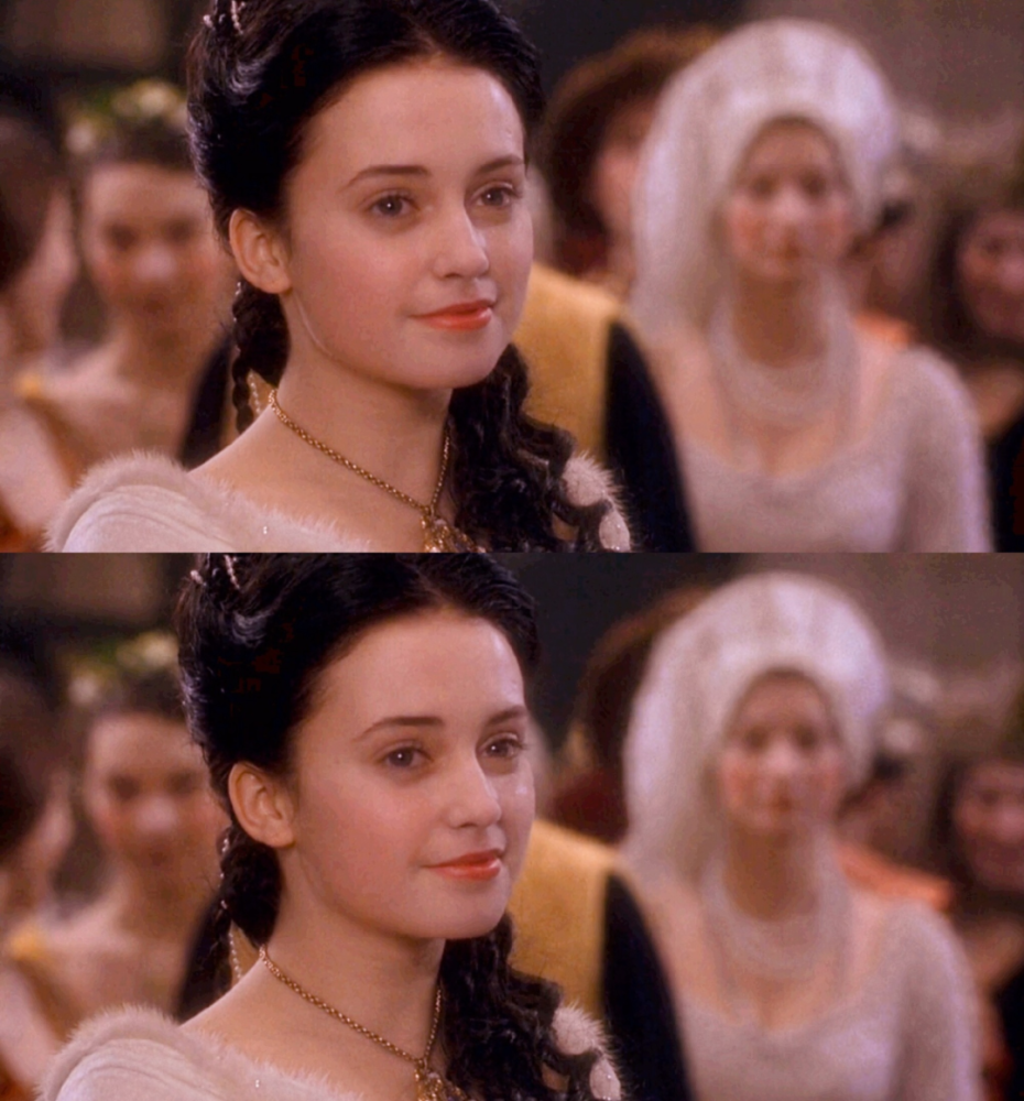 97版的白雪公主,光洁饱满的肉脸蛋,显得富态贵气,贵族派头十足。