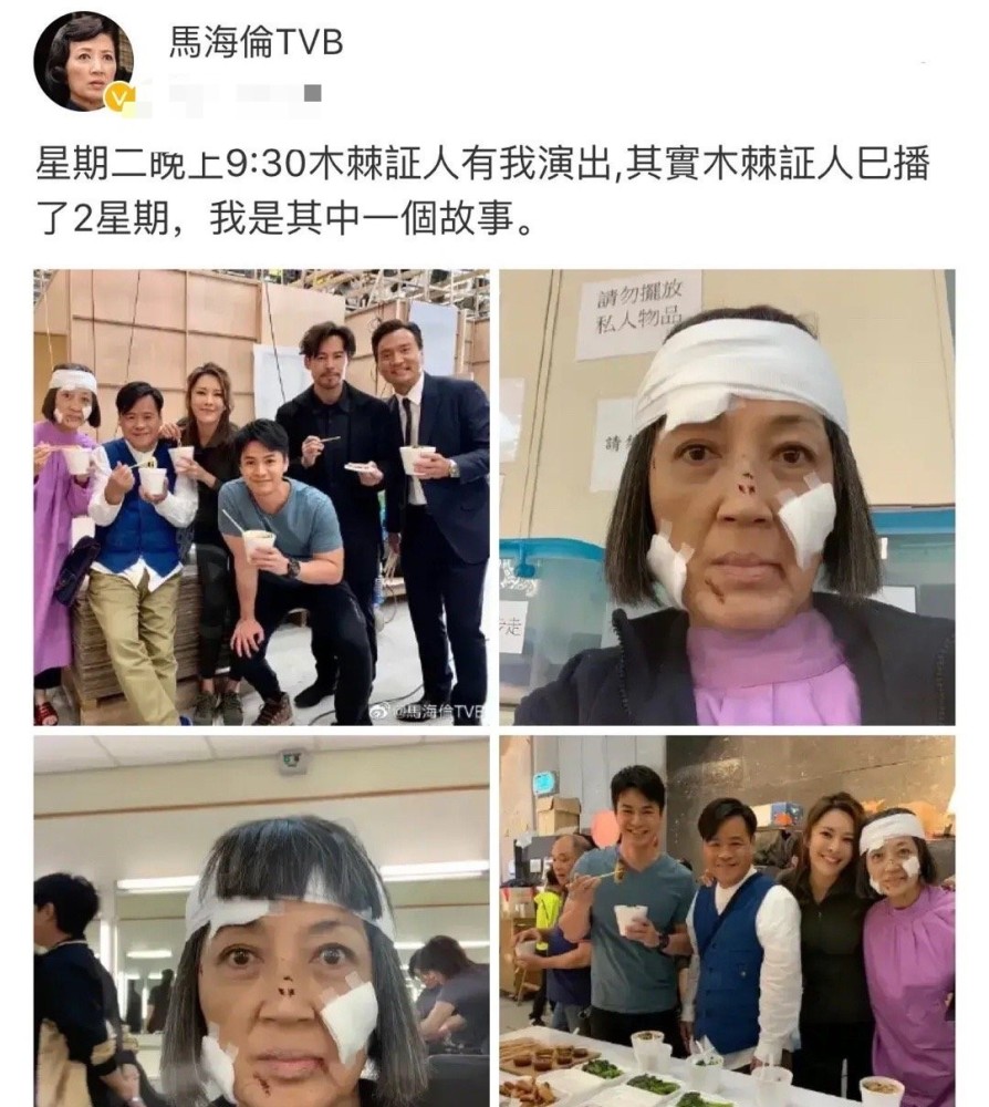 如今的马海伦也不追求名利,安安静静地演好自己的角色。她还在社交平台上晒出自己的收工照,照片中她还未卸妆的样子端着饭碗与工作人员合照有些吓人,不过后来澄清都是一些妆造的纱布和伤口。