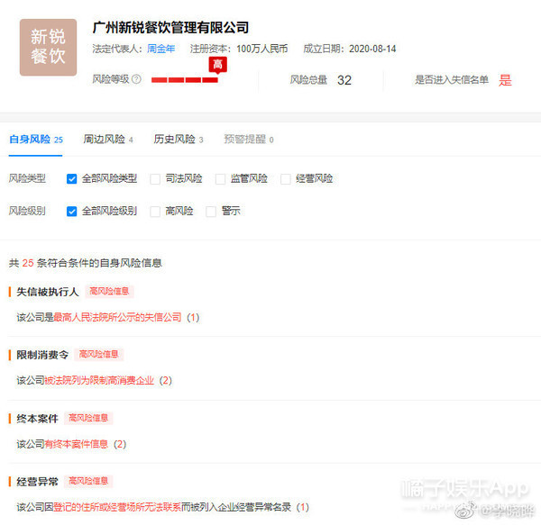 在天眼查上也显示高风险等级,