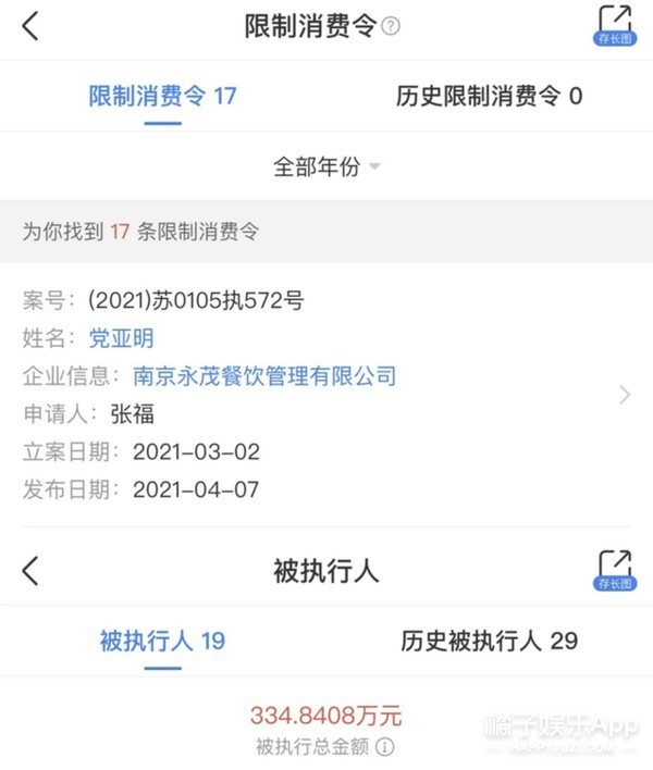 实际上茶主播所属公司南京永茂餐饮,也早就被列入被执行人名单,