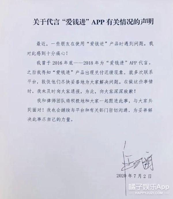 (主要内容:十分痛心!代言早已结束,我知道他们有兑付迟缓的问题,有督促,但没有向大众通报,很抱歉,后续我的团队也会继续跟进此事。)