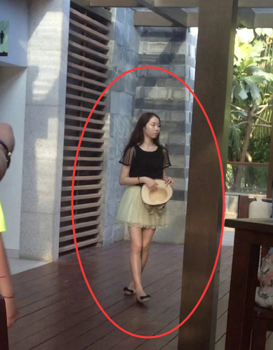 只见陈露身穿黑纱短袖,搭配浅色短裙,容貌并没有网上看到的那么清纯优雅,五官普通,皮肤暗淡,从侧面看头发似乎还比较单薄,和其他路人无异。