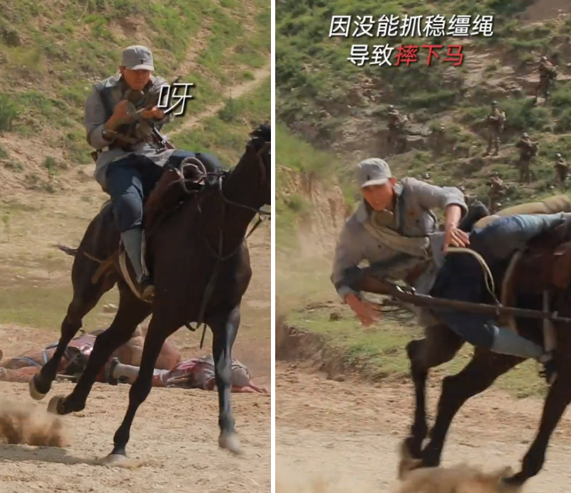 因为没有抓稳缰绳的时候,吴磊不慎摔下马,从高处坠落看起来就很痛,但吴磊在地上翻滚了一圈之后,不仅没有表现出任何的不适,下一秒直接起身离开现场不敢耽误拍摄。