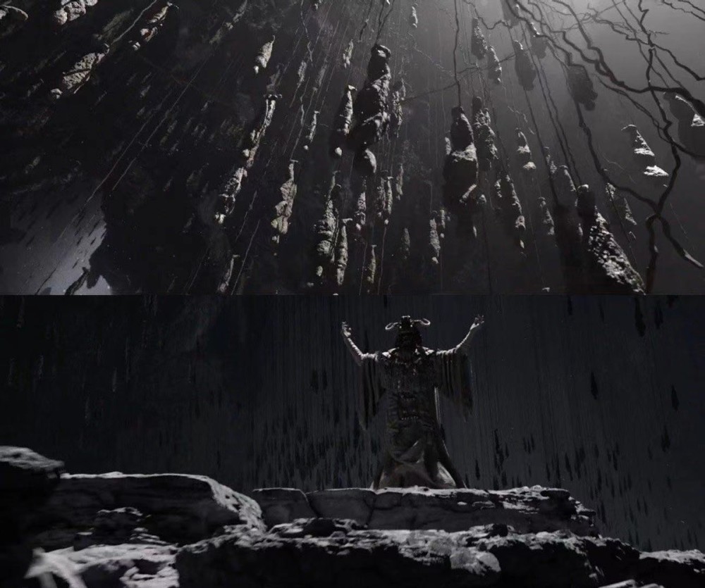 从预告片中可以看出,从献王墓出来之后,胡八一一直拿着雮尘珠,但在返程路上,他身上的红斑诅咒并没有消失的迹象,想必三人还需要抵达下一个地域寻觅其他神物,这些应该会在后续三部作品中一一呈现。
