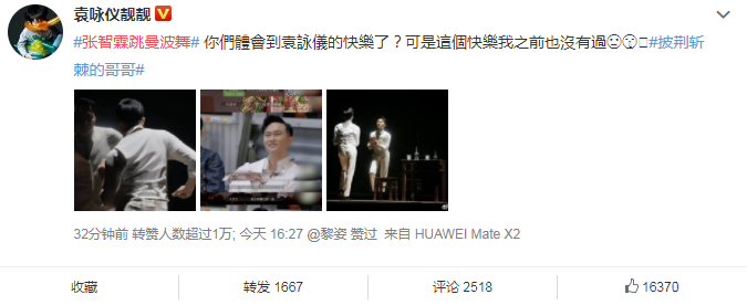 太太袁咏仪都说自己都没见过张智霖这一面,张智霖把自己第一次的曼波舞展现给观众了。