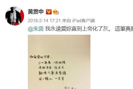 直到后来他和朱茵正式在一起,并育有一女的时候,我们看到的是一个成熟、有担当的好男儿。他会为朱茵写诗示爱。