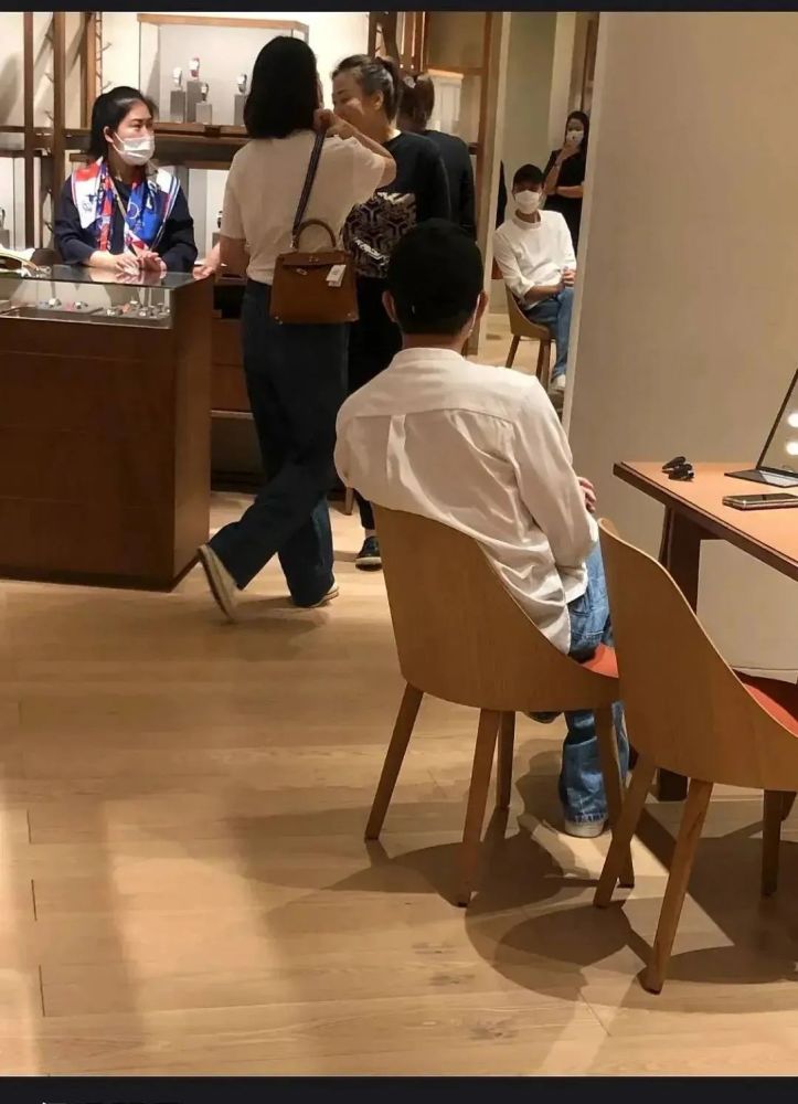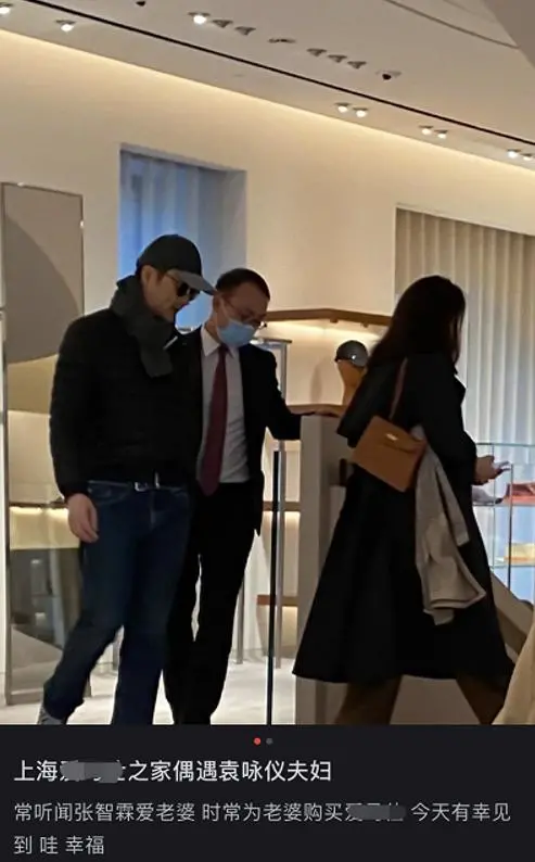 网友又在上海偶遇张智霖袁咏仪夫妇,直呼张智霖是等着付钱的模范老公了。靓靓永远不是在买包就是在买包的路上。戴着口罩的张智霖就安安静静坐在一旁等老婆精心挑选了。