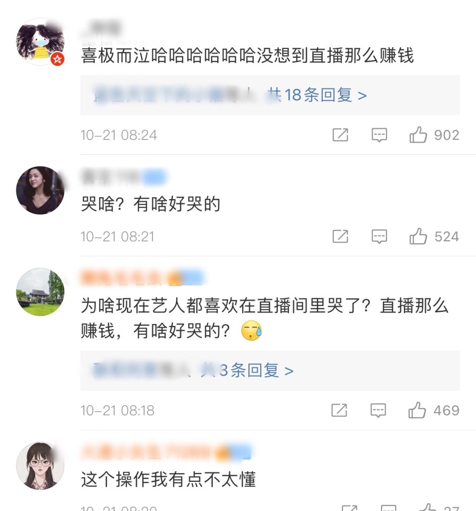 过气艺人在直播间落泪,自然是引起了网友的热议,大部分网友都对他的行为表示不解,吐槽称“直播那么赚钱,有啥好哭的?”,有的更是调侃辰亦儒是喜极而泣,没想到直播这么挣钱!