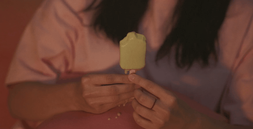 惠珍家停电,找洪班长过来修,等电的间隙,惠珍拿出正在融化的雪糕吃。光线昏暗,惠珍吃得出神,没注意雪糕融化在自己手上。