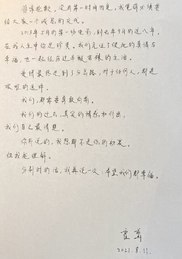 经纪公司称文淇私自接工作 损害了公司的合法权益