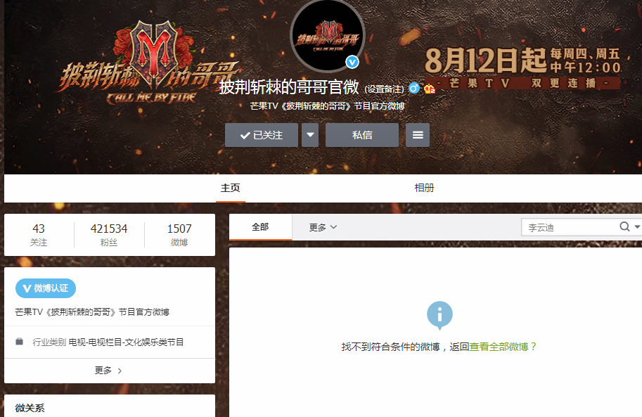 《哥哥》节目组在霍尊风波爆发后,火速与其划清界限。而这次李云迪的PC事件也闹得全网皆知,节目组也是火速上线删除其相关微博。目前在《哥哥》官博已经搜索不到李云迪的信息,看来下一步就是和对方彻底划清界限了。