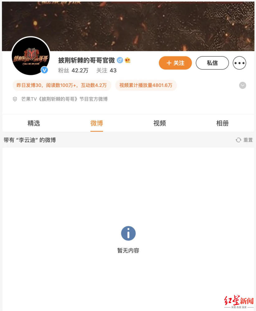 随后,红星新闻记者发现综艺《披荆斩棘的哥哥》官方社交媒体已删除李云迪相关内容,芒果TV已更换头像,《披荆斩棘的哥哥》多期视频下架,其它节目陆续下架涉及李云迪的相关内容中。