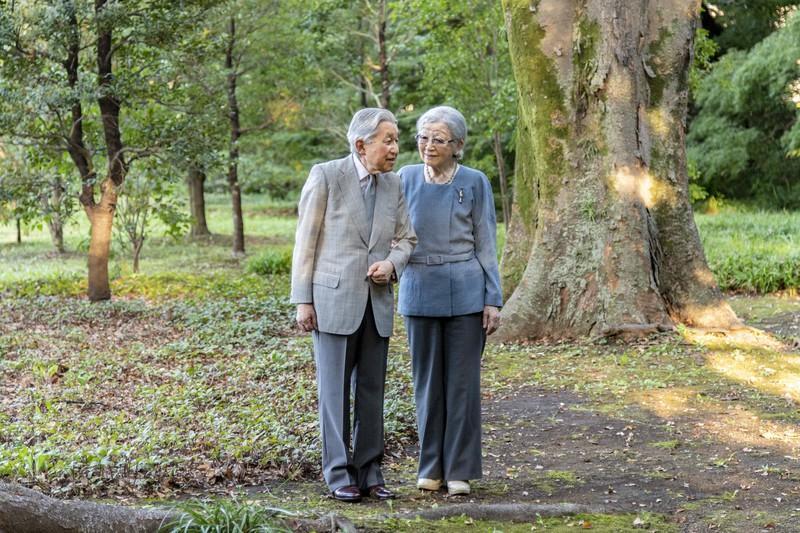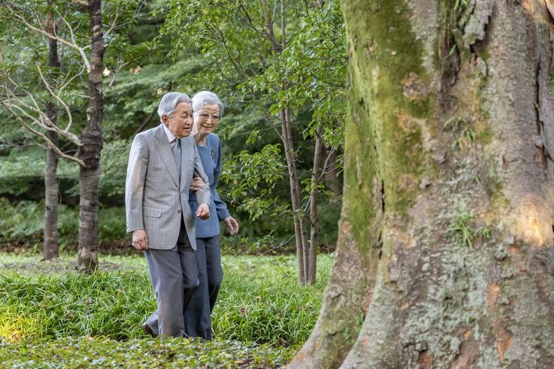 两人走累了便坐在木椅上歇息。据介绍,上皇夫妇早餐后朗读是必修课,早晚都在庭院散步,有规律地度过每一天。左手有僵硬症状的美智子最近开始恢复弹奏钢琴,为老年生活增添点乐趣。