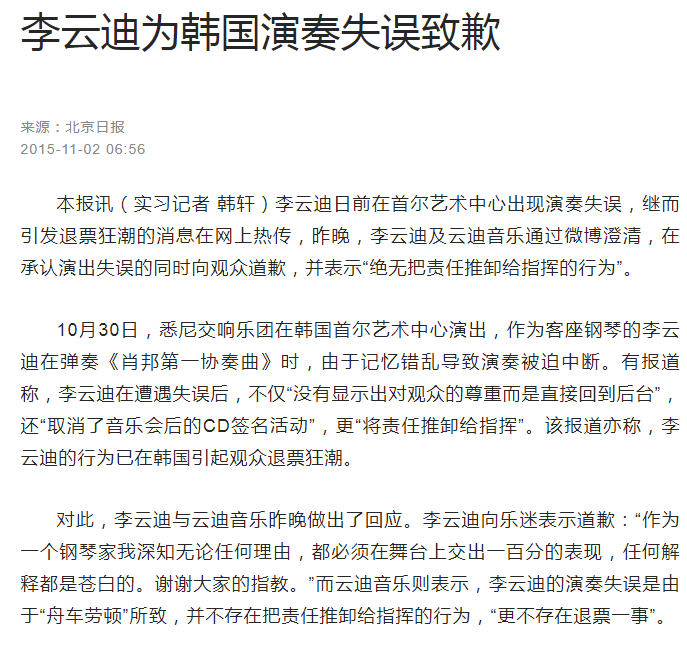 这是因为,李云迪的公共形象一向良好,给人的感觉除了才华横溢,还风度翩翩,彬彬有礼。谁能想到这样的青年才俊也会犯傻,一向是青年榜样的钢琴家也会犯法?