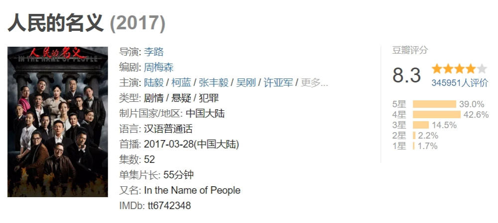 2017年,《人民的名义》开播,成为了一部现象级的电视剧,好评如潮。