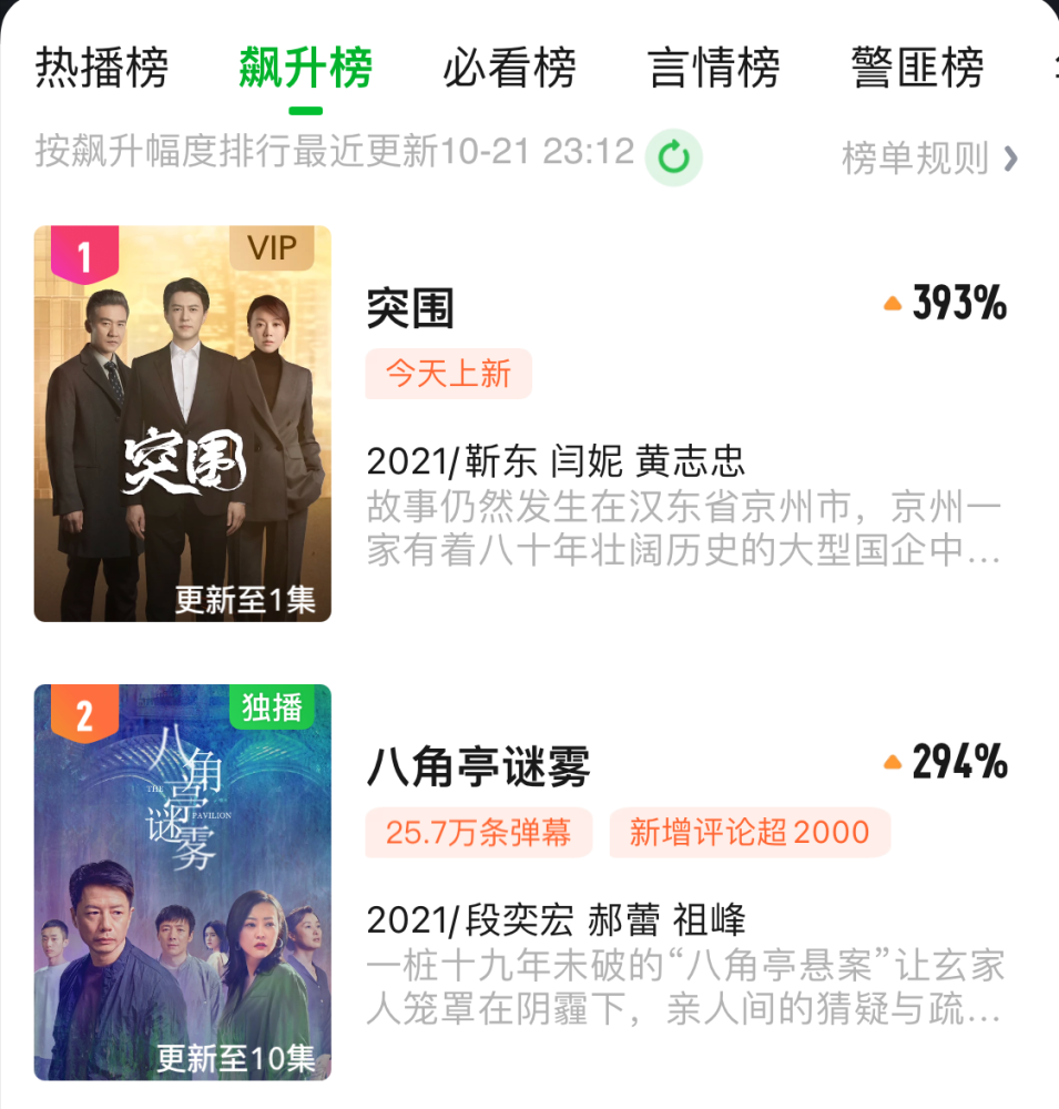 10月21日晚,由周梅森任编剧,沈严、刘海波联合执导,靳东、闫妮、陈晓、黄志忠、秦岚等主演的电视剧《突围》(原名《人民的财产》)登陆东方、浙江两大卫视首播。