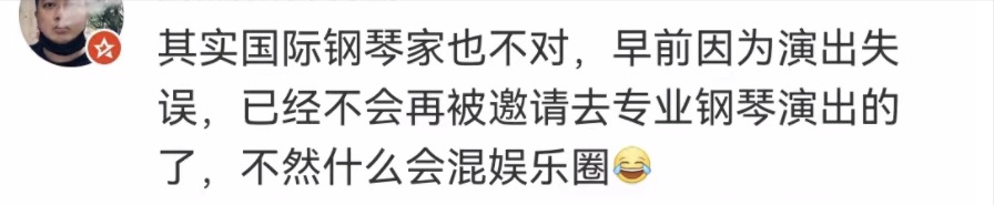 有网友爆料李云迪算不上是钢琴家,此前曾因演出失误,已经不会再被邀请去专业钢琴演出了,不然也不会来混娱乐圈。