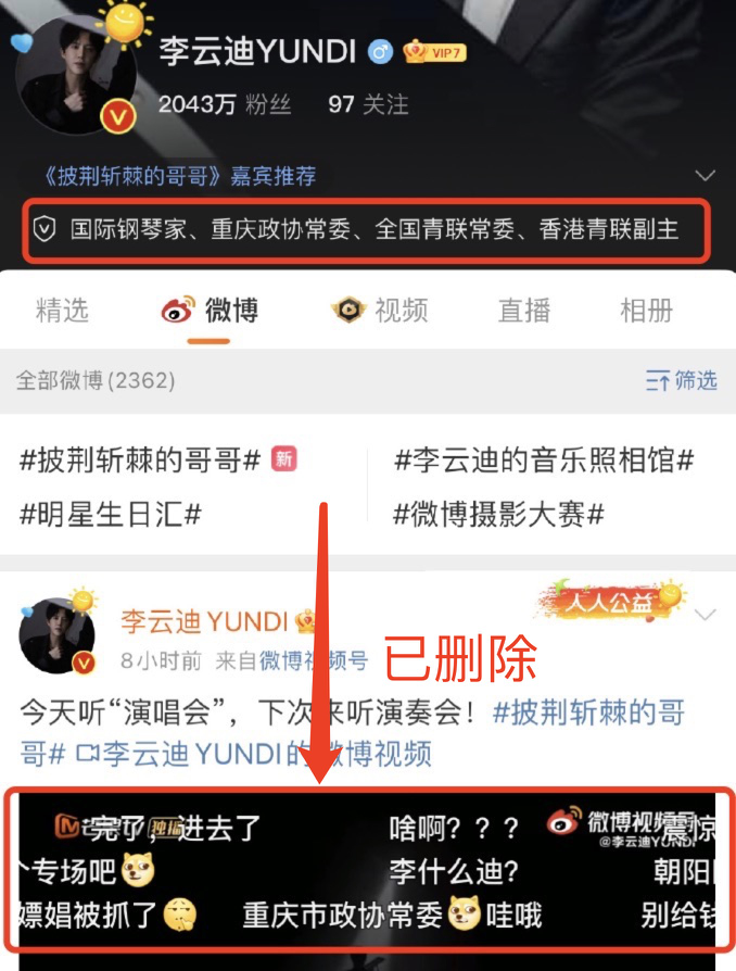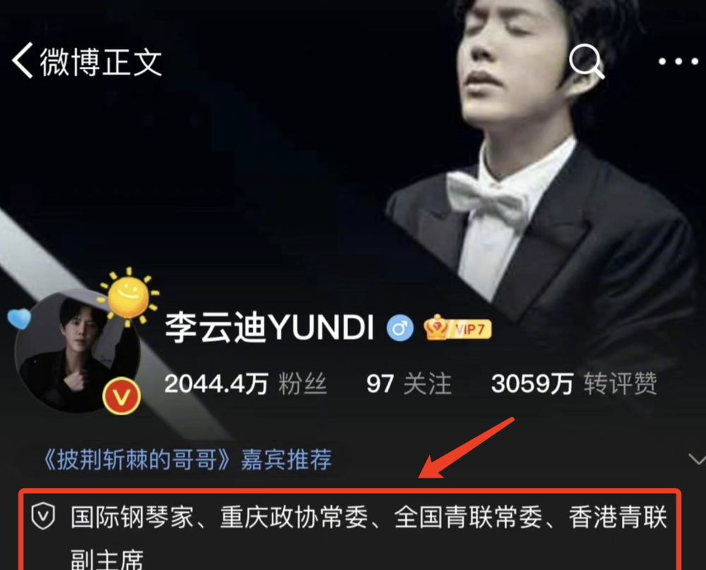 如今李云迪方连夜上线,更新认证资料,其他职位已经更改,仅留“国际钢琴家”一个头衔。