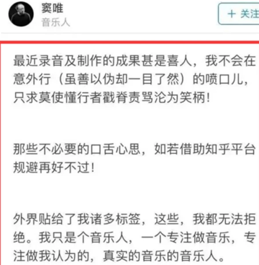 可当时被爱情迷惑双眼的窦唯全然不顾,不仅选择与队友闹掰,更在之后离开了黑豹乐队,还同时声明立场,绝不再唱乐队的任何一首歌。