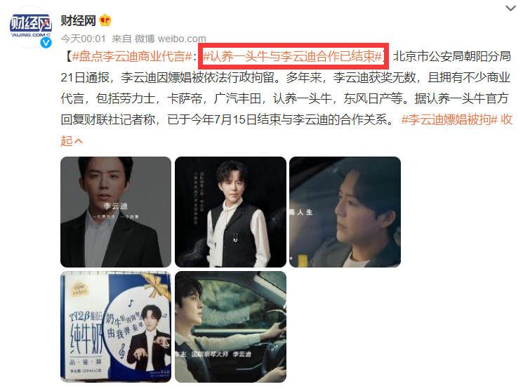 另外,李云迪代言的“认养一头牛”也也做出回应,第一时间与其解约,而之前李云迪曾受邀成为广州文旅的形象代言人,事发之后,广州文旅部门也紧急撤销了授予李云迪的名号,也删除了与其有关的宣传信息,相信接下来各品牌都会陆续有所动作,按照代言合约的规定,李云迪恐将面临赔偿天价违约金。