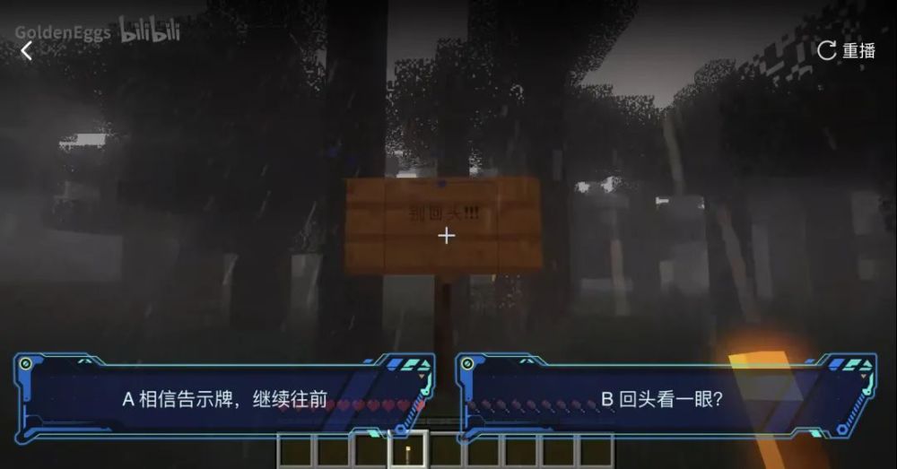 2019年10月25日,你从床上醒来,有些头昏,眼前忽闪过头戴面具的恐怖身影。下床推开门,眼前是一块标牌,写着:“别回头!”这时,你需要做出第1个选择:回不回头?