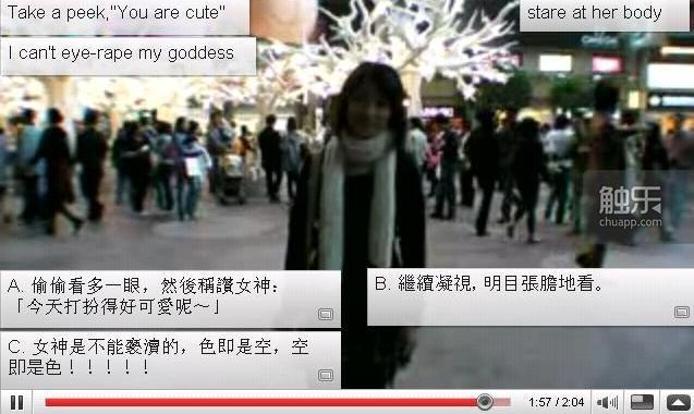 不同视频提供的代入体验也有所区别。某些时候,观众可能把自己代入视频中的某个角色(一般是主角),成为了“我”,根据角色的处境和个性来做出行动判断。但更多时候,观众则是“上帝视角”的旁观者/操纵者,对故事发展的关注远超对人物的共情。