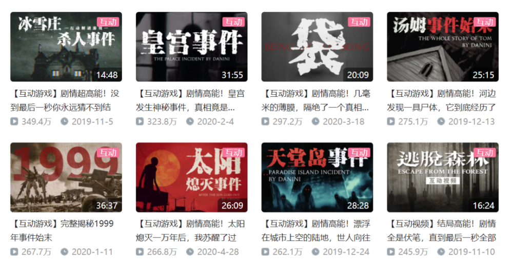 而从内容来看,除了互动视频的共性特征(用户参与人物故事走向抉择,指向不同结果),B站视频时长较短,一般控制在10分钟左右。短视频在创造情境、情感动员以及社交传播上有优势,这和互动视频强调的在场感、参与感不谋而合。