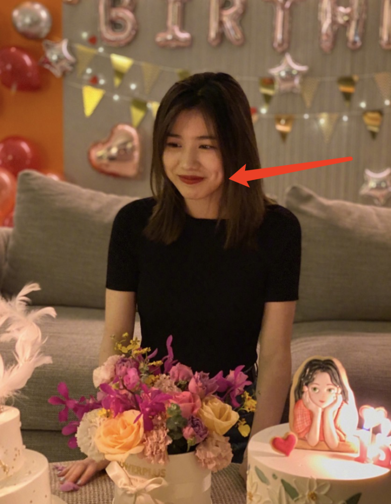或许是因为嘴唇有些凸出,所以葛荟婕的法令纹十分明显,即使在滤镜的修饰下也没能完全遮挡。
