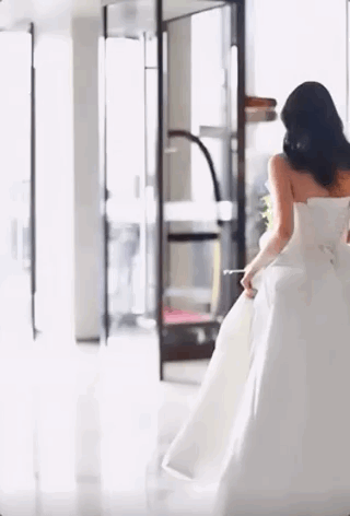 随后葛荟婕将睡衣换成了白色婚纱,展现出自己的曼妙身姿。