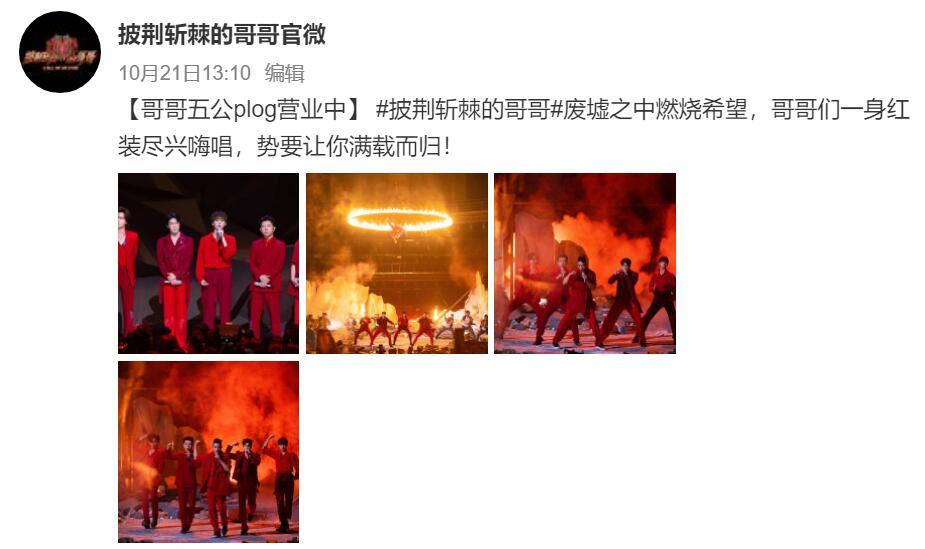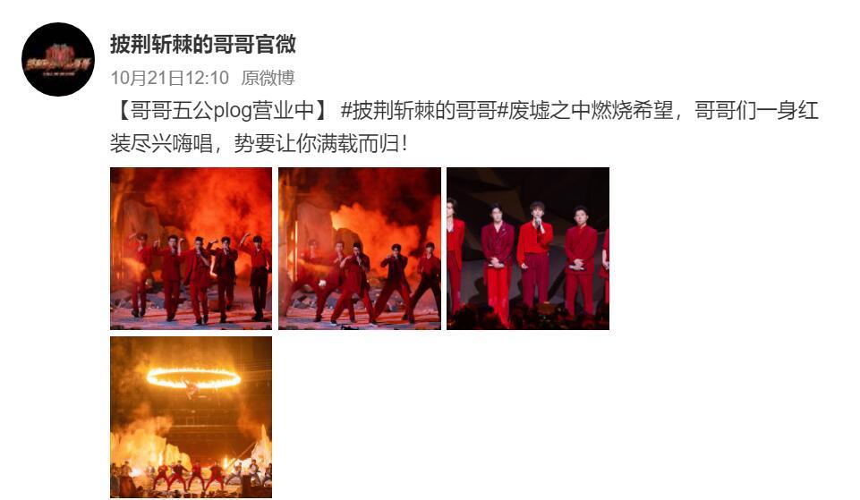 在这个表演结束后,官微发了宣传文案,并且配上了四张图。