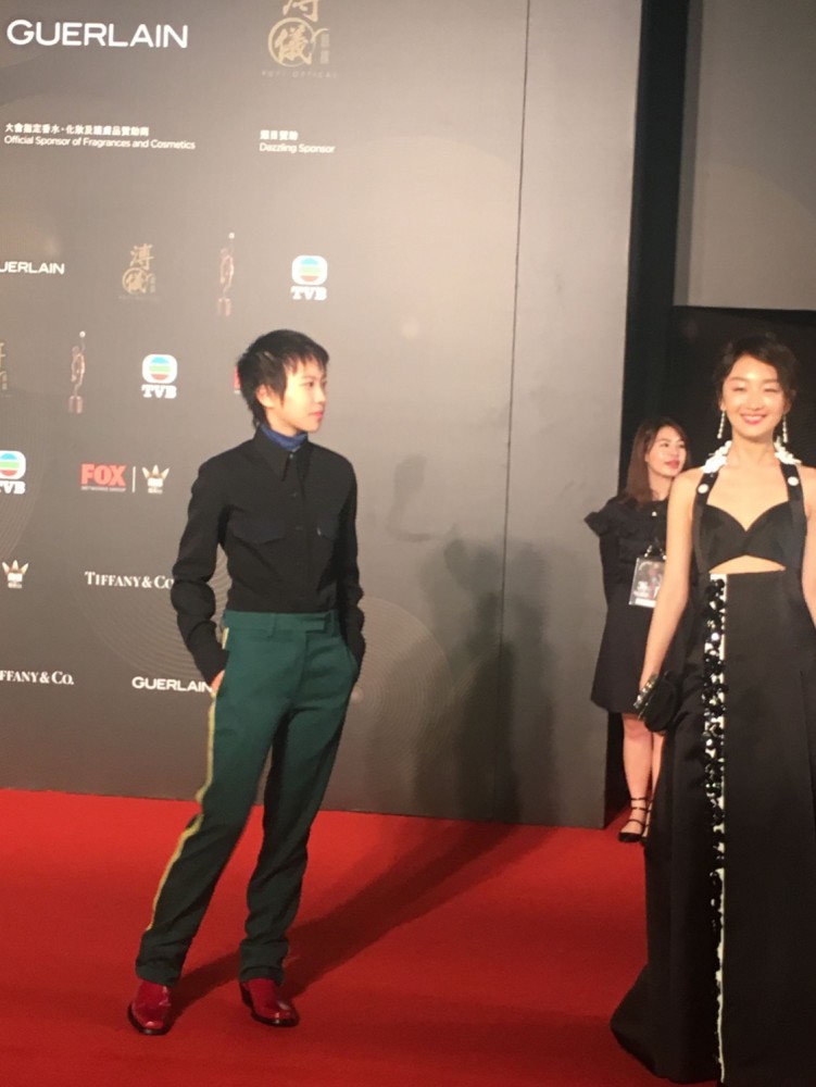 相反,站在她旁边的李亚鹏看起来就是非常的精神。穿着一身黑色西装,非常的端正,再加他干脆利落的发型和高挑的身高,两个人就形成鲜明的对比,一下子就把观众的眼球吸引过来了。这就是会穿吧!