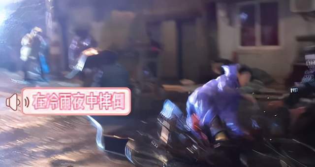 画面中,董洁穿着塑料雨衣,为了拍摄的整体效果更加突出,骑着自行车在大雨中一遍又一遍地狠狠摔跤,雨水淌在脸上,身上也有些许擦红,拍摄过程中整个人看着很是狼狈。