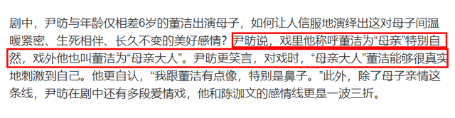 而在此剧开播之时,董洁还特意晒出自己在家里煮饺子的一段视频,以此庆祝新剧开播。此外,董洁还坦言,为了能够更好的磨合,拍出更加真实的母子亲情,自己与尹昉戏里戏外都以母子相称,由此去感知情绪。