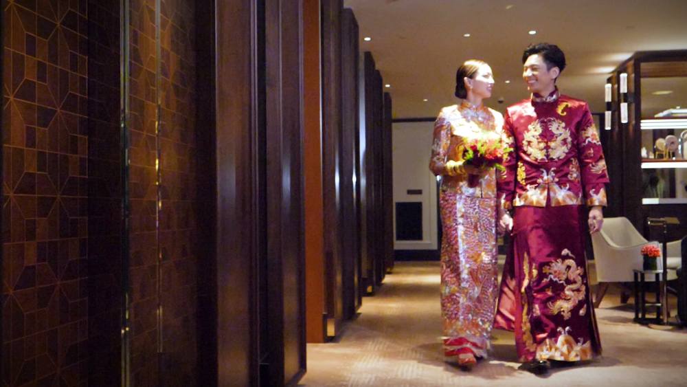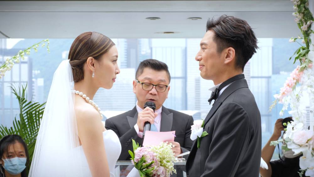 由于两人都有信仰,所以仪式上有一位牧师专门领着两人宣布誓词以及交换戒指等等,薛世恒由于太激动,现场深情地对妻子说道:“我爱你”,随后掌声响起,两人甜蜜拥抱。