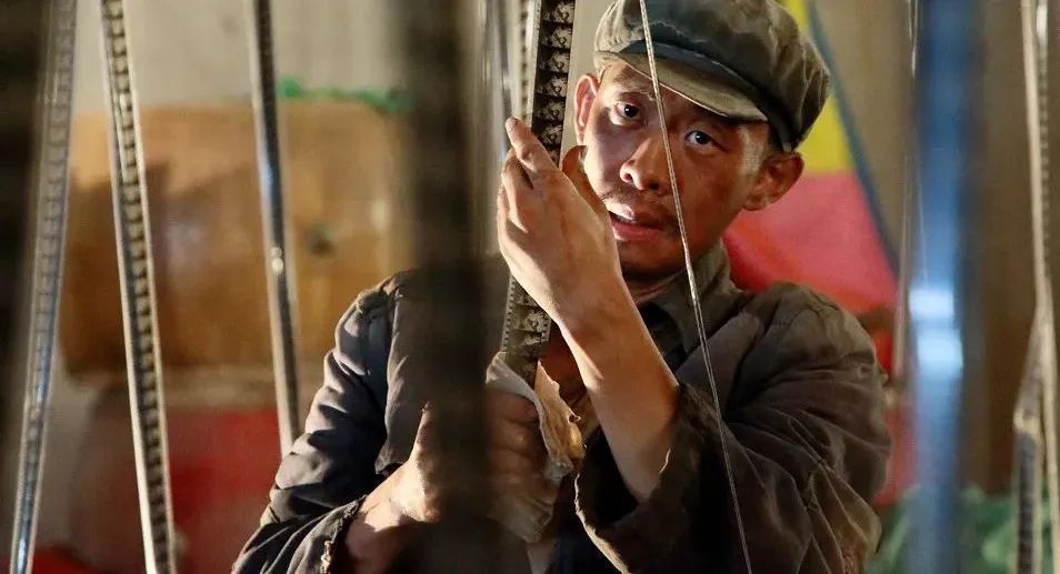 这个场景在演员张译身上一共发生过两次——一次是十岁时,父母带他去看电影,他是绕到幕布后一探究竟的小男孩,那部电影是《红高粱》。第二次是他四十岁时,成了张艺谋电影《一秒钟》的男主角,一个追着电影放映、想要看一眼已逝女儿最后影像的劳改犯。