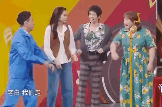 贾玲假装生气,转身挎住白凯南胳膊: “老白,我们走!”