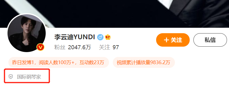 目前,李云迪的微博认证也从国际钢琴家、重庆政协常委、全国青联常委、香港青联副主席掉到只剩国际钢琴家。