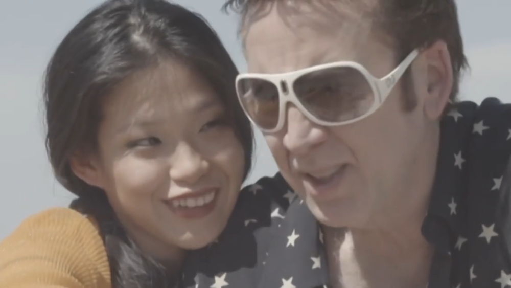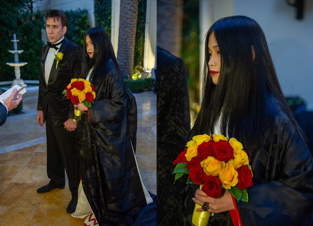 凯奇历任太太中,包括柴田梨子在内,有三位都是亚洲女人。他说:“有人给我倒咖啡,有人对我唯命是从,这不是我和亚洲女人相处的经历”,还表示,柴田梨子不是属于那种比较温顺的妻子,但他喜欢的也正是这一点。凯奇躺在地上,柴田梨子的鞋跟对准了凯奇的头,画面十分怪异。